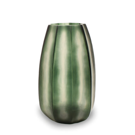 Handblown and hand finished, cut and polished/sanded glass vase.