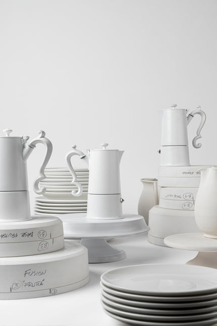 With its new matt white finish, the Lady Anne espresso coffee pot designed by Laura Caffi is more stylish than ever.