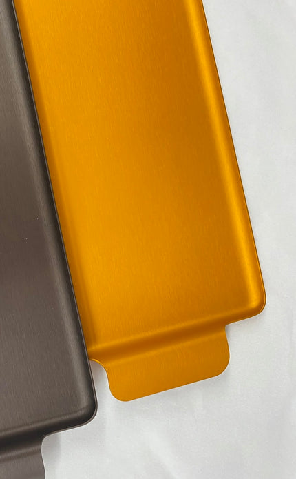 Anodised aluminium tray/ platter, brushed surfaces, hand finished.