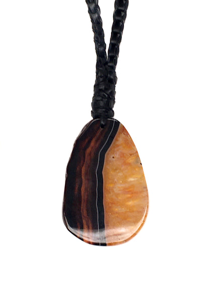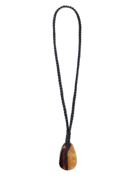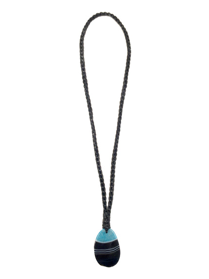Lyn&Tony "Magic" Necklace $165.00 Blue/ Black Agate Amber/ Black Agate − + Add to Cart Delivery Returns & Refunds Request Information Black woven kangaroo leather and agate necklace. Brand Information