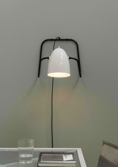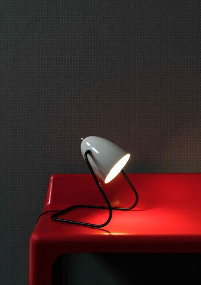 The M3 table lamp was designed in 1952 by the French designer, Michel Mortier. Its elegant curved tube, in black metal, serves as a stand and as the pivot for the coloured shade. With it hung as a wall light by means of its wall fixture accessory, you can direct its light to suit your needs: downwards for intimate lighting, like a reading light, or upwards for indirect lighting covering walls and ceiling.