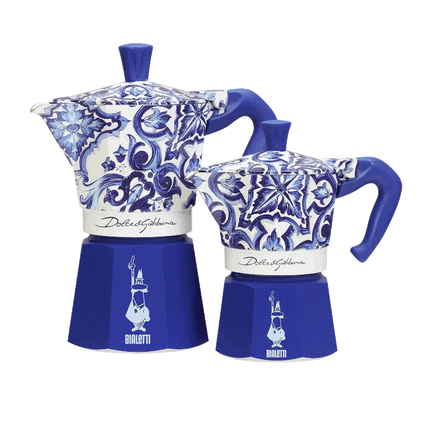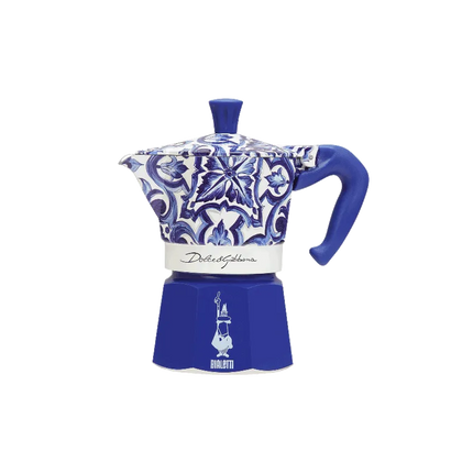 Today, in the exclusive Dolce&Gabbana edition, Moka Express becomes a tribute to the landscapes and unique colours of Mediterranean, in an invitation to the discover the captivating atmospheres of southern Italy. The purity of white and the intensity of blue make Moka Express Mediterranean Blue a genuine masterpiece of style that transforms the coffee ritual into a celebration of handcrafted excellence, that have always been at the heart of Dolce&Gabbana's aesthetics.