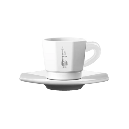 Bialetti’s octagonal coffee cup in silver white porcelain, with the iconic little man with a mustache, was designed by Bialetti to enjoy a delicious coffee prepared according to true Italian tradition.