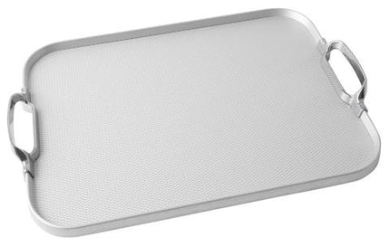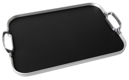 The Anodised aluminium tray, hand finished, with polished cast handles and optional silicone rubber grips (the Kaymet Rubber Grip - POA).