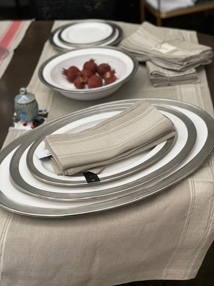 An essential table and kitchen accessory made in Italy from an absorbent and durable 60% linen 40% cotton blend. Can be used as an oversized placemat for two or a table runner. Available in a variety of colours. Matching aprons, oversized napkins and kitchen towels also available.