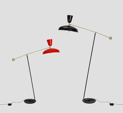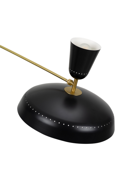This magisterial and timeless floor lamp was designed by Pierre Guariche in 1951, and is offered in two sizes. It’s a style that has come to symbolise the luminaires created by this designer, and features an embossed metal lampshade and two light sources to provide direct and indirect lighting.