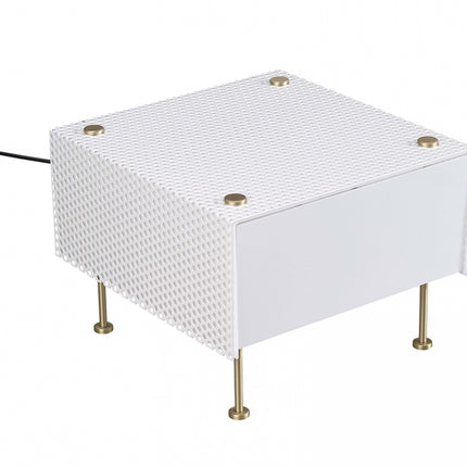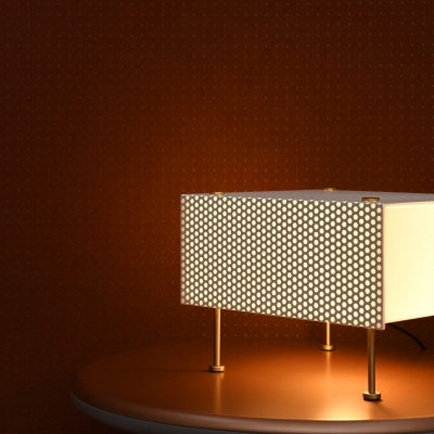 The G61 table lamp brings life to a bookcase, coffee table or resting place. This light cube, covered with a white lacquered perforated sheet metal cover, is available in two sizes: Small or Medium. Designed by Pierre Guariche in 1959, with the sister model G60, this luminaire offers a warm and poetic light, which dresses and enhances a contemporary interior.