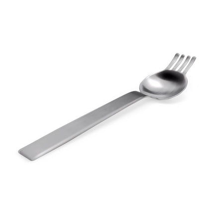 Stainless steel combination spoon and fork utensil, perfect for ramen.
