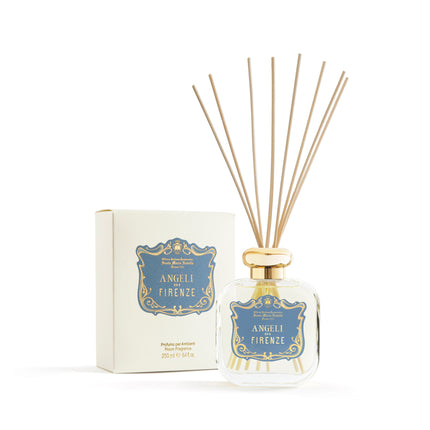Marine notes meet the brilliance of citrus fruits and peach: Angeli di Firenze is an hymn to youth and a perfect fragrance to brighten up the olfactive ambience of any house. Angeli di Firenze room fragrance diffuser bears all the distinctive characteristics of the Firenze 1221 editions: the glass bottle with the SMN monogram on the back is crowned by a golden cap, exposing a finely engraved label.