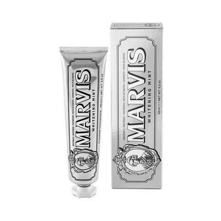 Rich and creamy, Marvis Whitening toothpaste delivers a refreshing, long lasting burst of cool mint. Contains ingredients that gently but effectively work to gradually reduce discoloration of the teeth to deliver a whiter and brighter smile. Made in Italy.